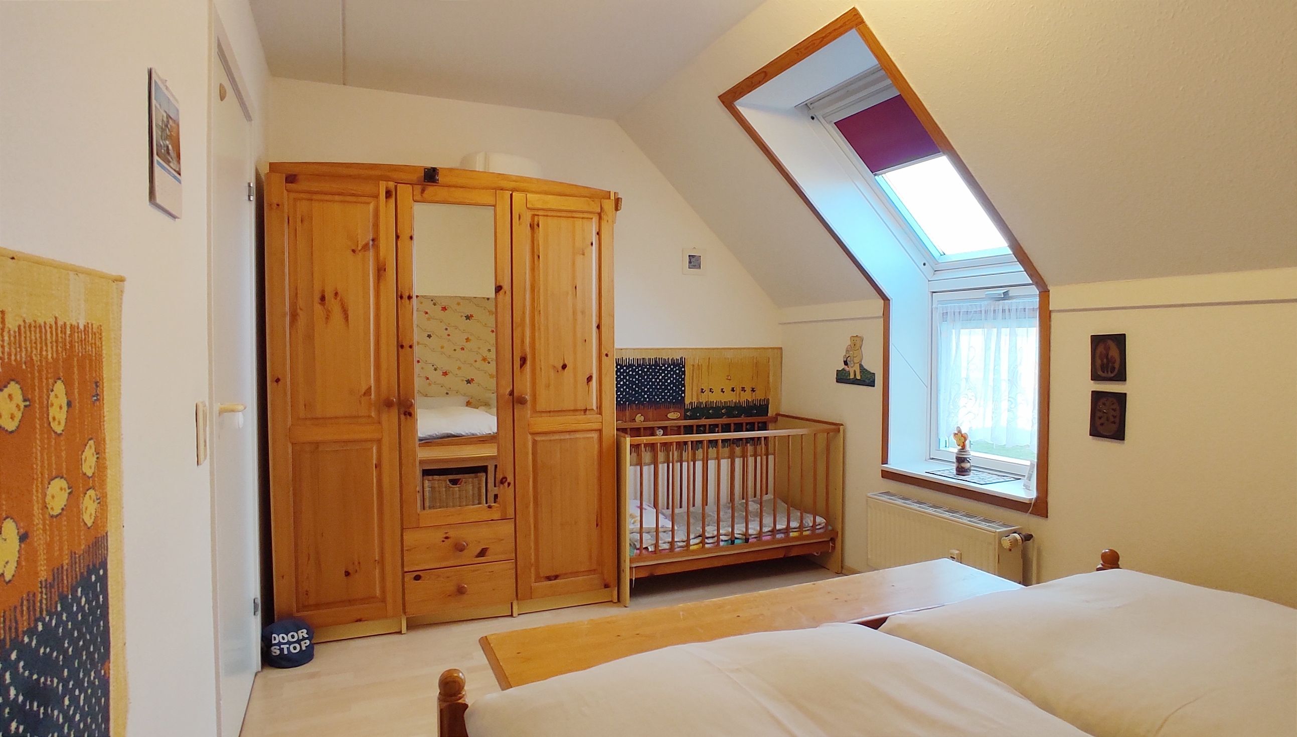 Besonders kinderfreundlich: Mit Kinderbett, Kinderhochstuhl und Spielzeug.