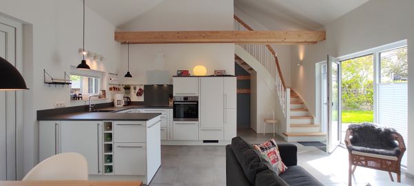 Das Haus ist ganz neu, die Ausstattung und Lage super. Ein paar Beispiele: Eine großzügige Küche, schöne Terrasse, Dusche und WC getrennt, ein Fahrradhäuschen, zwei Pkw-Stellplätze, sehr freundlicher und gut organisierter Vermietungsservice.