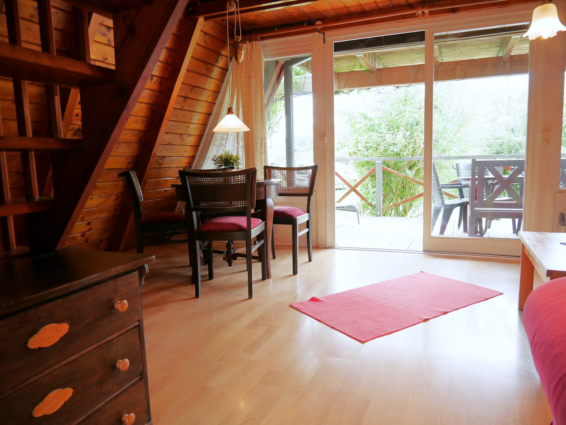 Kombinierter rustikaler Wohn- und Essbereich mit Zugang zur südlich ausgerichteten, überdachten Terrasse