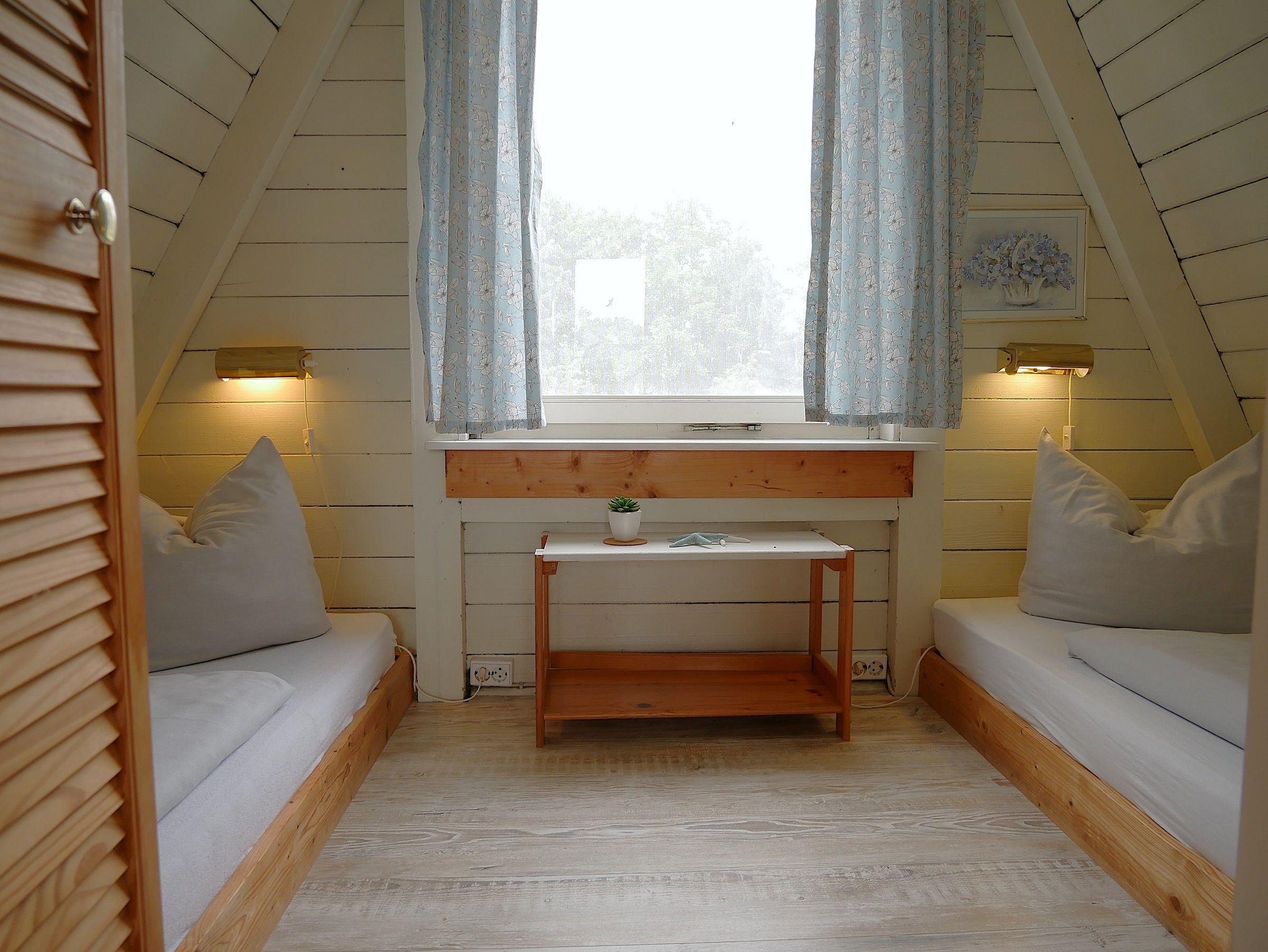 Zwei separate Schlafzimmer im Obergeschoss mit Doppelbett (160x200cm) oder zwei Einzelbetten (Bodenbetten 90x200cm)