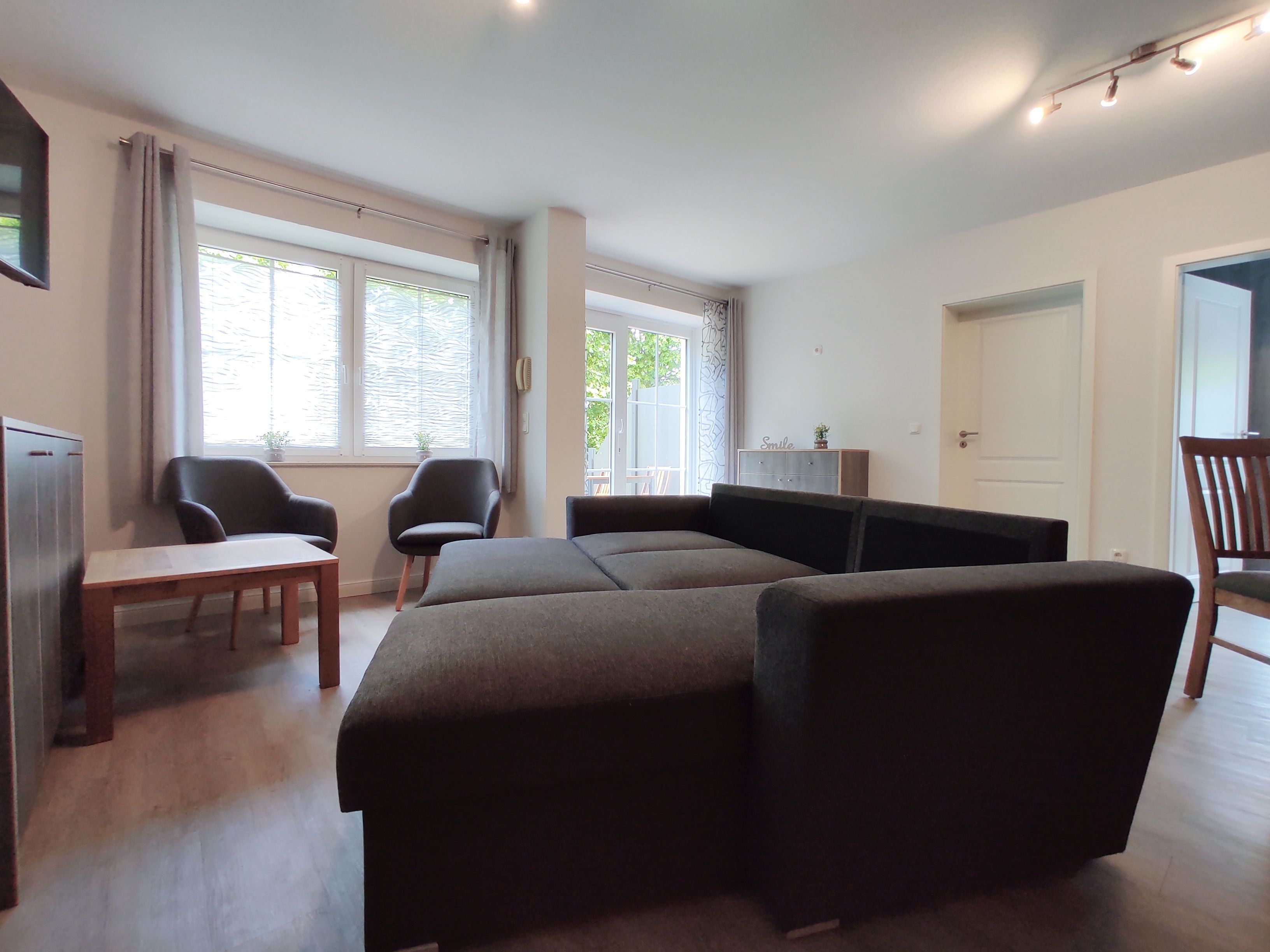 Unterkunft mit zwei getrennten Schlafzimmern und Nähe zum Strand (200m) Begehbarkeit über Terrasse war super. Sehr hundefreundliche Gegend und Mitmenschen...