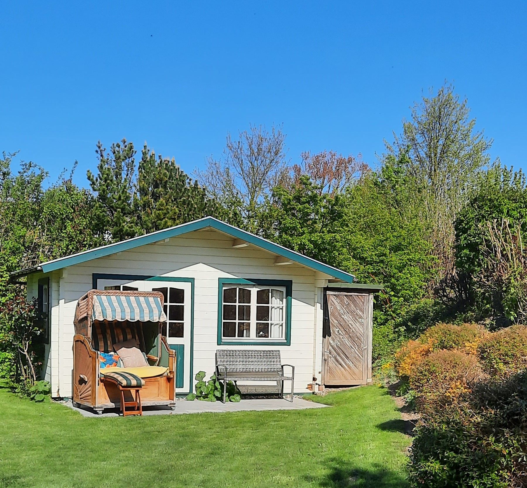 Schön angelegter Garten mit Gartenhaus und integrierter Sauna (Nutzung gegen Gebühr)