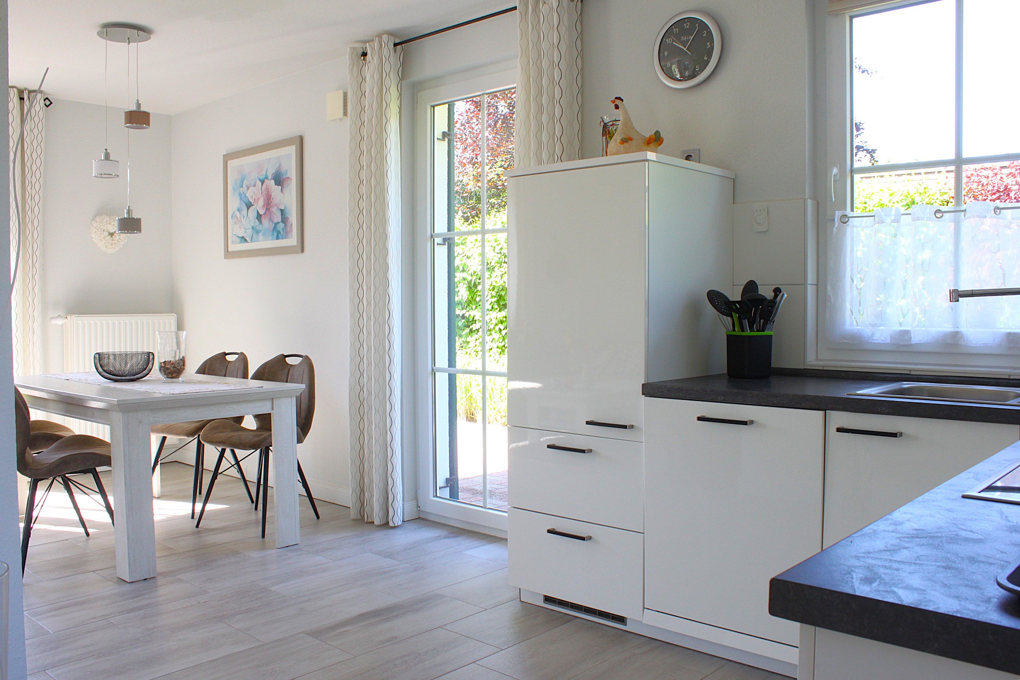 Heller und stilvoller Wohn- und Essbereich mit Zugang zum Garten