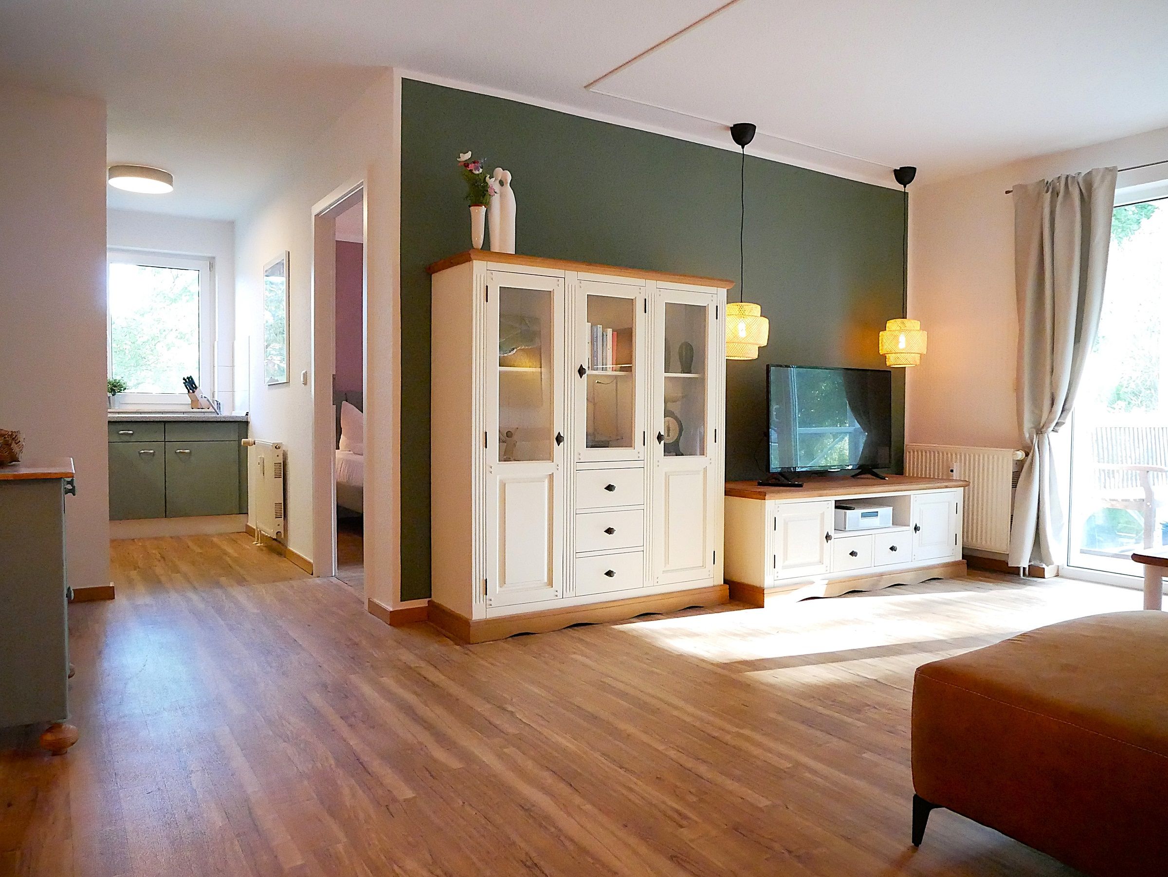 Großzügiges Wohn- und Esszimmer mit Sofaecke, TV, WLAN und Esstisch