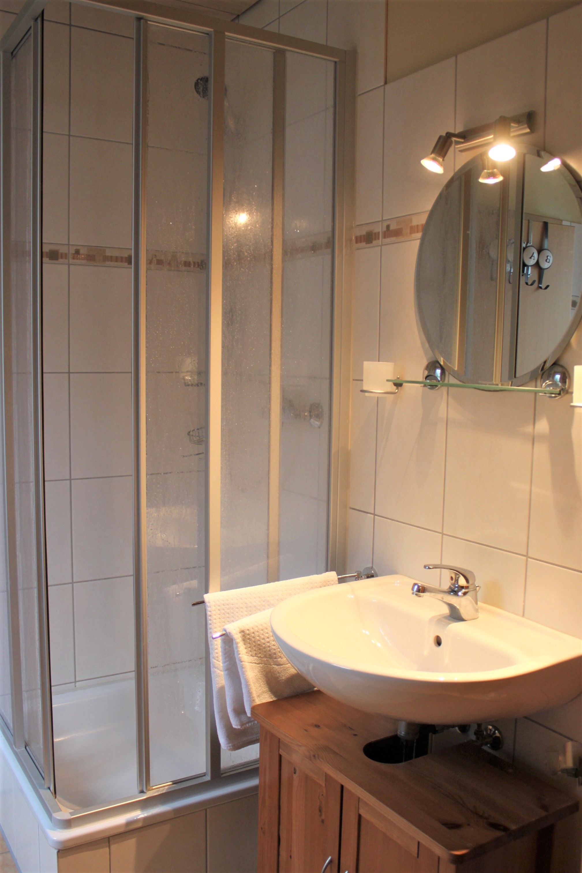 Geräumiges Badezimmer mit Dusche und Sauna