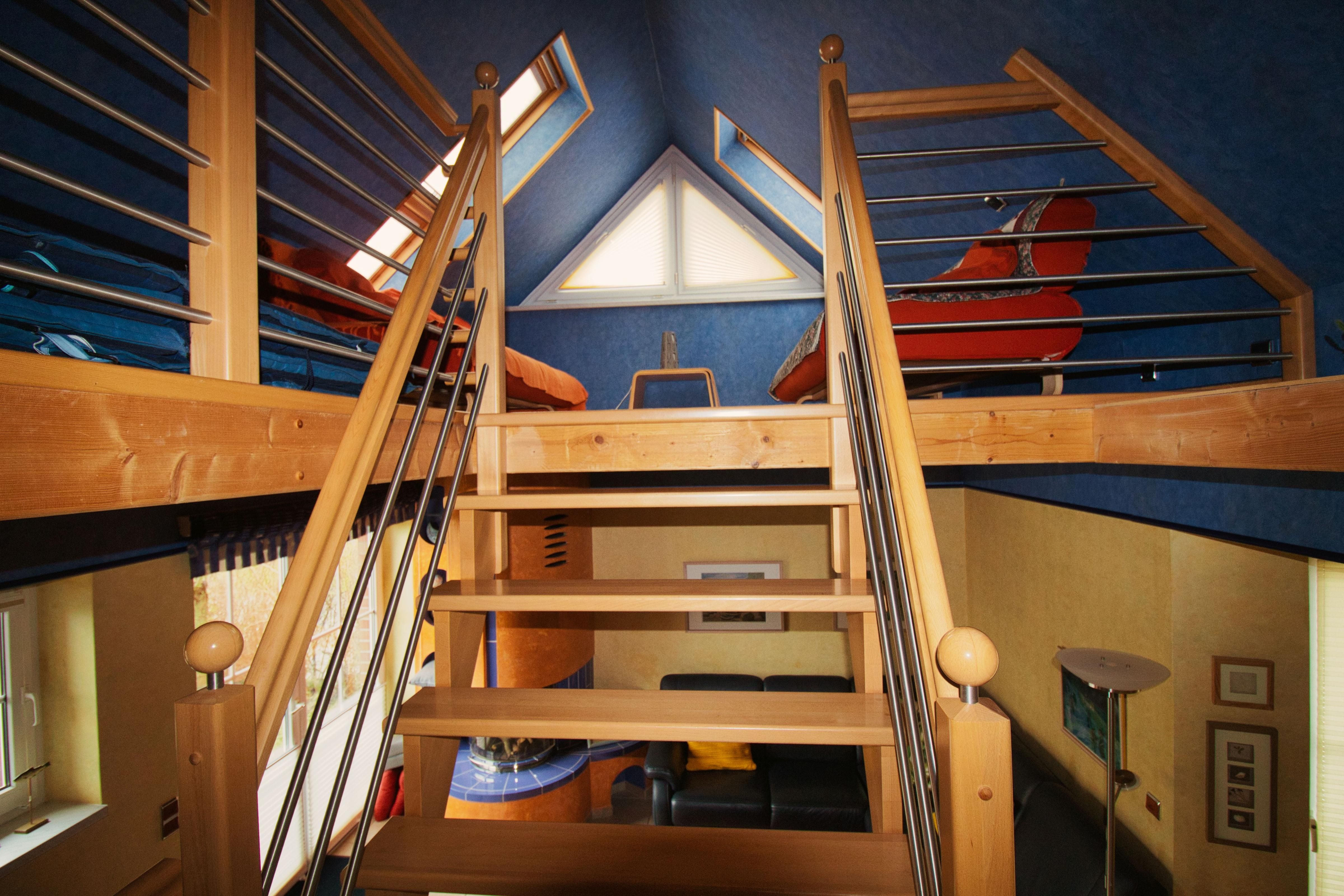 Zweite Wohnebene unter Dachschrägen mit zwei Schlafsofas und viel Gemütlichkeit und Meerblick